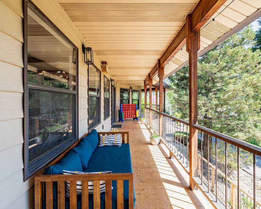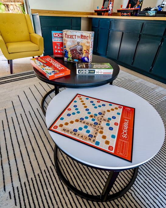 “We had a wonderful time at this lovely and beautiful house. This is the perfect getaway for my family for this Christmas break. It is private and peaceful, and we really enjoyed the gorgeous mountain views from the big windows in the living room. The house is neat, clean, and well-equipped. Beds were also very comfortable. There was even a hot tub and a game room as an extra bonus! Saadia was very helpful and responsive to our questions and needs.” - Jennifer ‘24 THE HOME Welcome to your very own secluded retreated just 4 miles to Sequoia National Park entrance. Our villa, Sequoia Peaks, has been renovated and entirely redecorated. It offers comfortable beds, linens, furniture, counters, flooring, kitchen essentials... 2000 sqft, 3 bedrooms all with HDTVs and 3 bathrooms. Family room and dining area and wrap around deck. - Soak in hot tub after a day of hiking in the acclaimed Sequoia and Kings Canyon National Park - Relax in the spacious, bright and sunny living room with large windows, 65" HD Roku TV and family board games (Catan, Risk, Scattergories,...) - Connect your Netflix or favorite streaming service and watch a family movie on the large 65" Roku TV - Comfortable dining space that accommodates 8 guests - Reading corner to wind down after dinner - Master suite with 1 bedroom, a king bed, 1 walk in closet, spacious bathroom with double sinks and showers, workspace and HD TV - Bedroom 2 with adjacent bathroom, bunk beds with 2 full beds, workspace, closet - Bedroom 3 on the first level with private entrance (accessible only via the deck or the outside patio), 1 king bed, 1 kitchenette with fridge and coffee bar, HD TV, workspace, closet, 1 full bathroom. THE GROUNDS With more than 12 private acres, the house sits on top of a unique domain with gated entrance and winding driveways. This is like nowhere else in Three Rivers with extensively landscaped features all around the house. - Enjoy the breathtaking mountain views in the 4 outdoor lounging areas - Drift off to sleep while enjoying the Kaweah river sound - Enjoy a home cooked dinner on the propane BBQ grill in the Spanish outdoor kitchen - Arcade/Game room adjacent to the Spanish Kitchen - Have fun playing a Life Size Connect 4 game - For the adventure inclined, hike the 500 ft steep trail on the property grounds to the old log flume. Be sure to bring your camera to capture truly unique sweeping views of the Sierras. THE KITCHEN Beautifully appointed and fully equipped with all kitchen essentials for cooking delicious family meals and making unforgettable memories. - It offers all modern amenities: full side by side refrigerator with freezer, electric range oven and stove, microwave, dishwasher, garbage disposer in sink - Full set of dish ware and cutlery for up to 12 guests - Ninja Foodi 9-in-1 Pressure Cooker and Air Fryer - Coffee bar with Duo Keurig maker, complimentary assortment of delicious flavored K-pods with creamers and sweeteners, French press and tea station with complimentary tea bags - Large dining table with space for 8 guests THE ARCADE ROOM This is your space for unwinding after a day of adventure or keeping both children and adults entertained on a staycation. - Colorful Lounge area with full size sofa, arm chairs and 55" HD TV - Xbox one video game console with two controllers and a preset of games - Dual Shot Basketball Arcade Game with electronic scorer - Arcade Marvel counter cade station - Arcade Mortal Kombat counter cade station - Full size Foosball table - Full size Air hockey and table tennis table - Cornhole game - Large board games collection including classics such as Risk, Catan, Scattergories, Scrabble, Chess, Checkers.... THE SPANISH KITCHEN Outdoor covered patio with colorful Spanish tiles for entertaining and enjoying delicious family meals - Gas burning BBQ grill - Full size dining table with 8 chairs - Mini kitchen with sink - Giant Connect 4 game